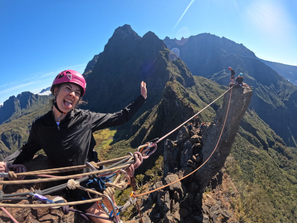 Mais avec quelques encouragements et un bel esprit d’équipe, nous sommes tous parvenus à dépasser nos peurs, pour finir récompensés par une vue magnifique sur Mafate et Cilaos.